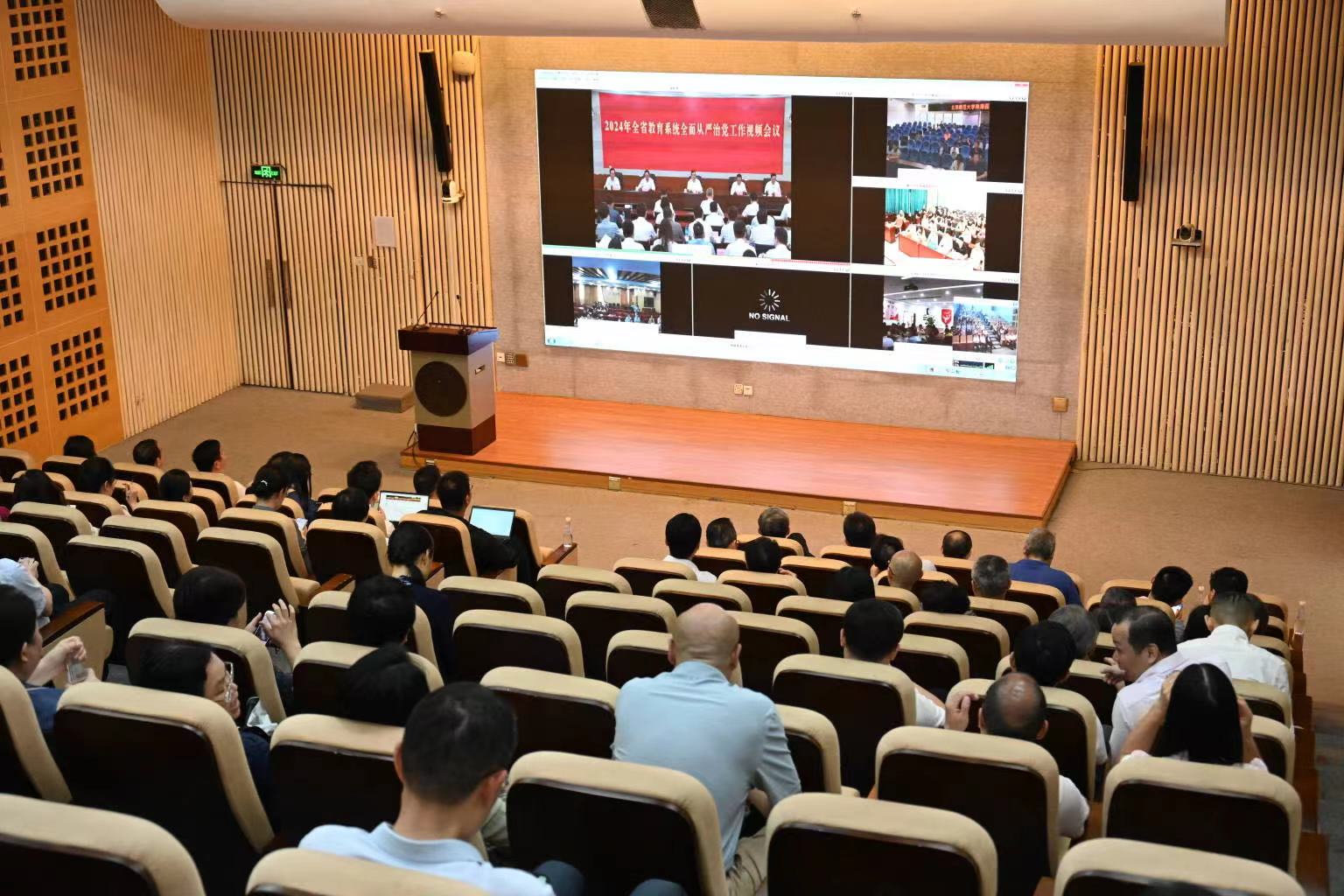 4月15日上午,省委教育工委、省教育厅党组召开2024年全省教育系统全面从严治党工作视频会议,深入学习贯彻习近平总书记关于党的自我革命的重要思想,全面贯彻党的二十大和二十届中央纪委三次全会精神,落实教育部2024年教育系统全面从严治党工作视频会议、十三届省纪委三次全会和省政府第二次廉政会议精神,总结2023年全省教育系统全面从严治党工作,部署2024年主要工作。会议以视频会议形式召开,在省委教育工委、省教育厅设主会场,在各地级以上市教育局、各高校设分会场。深圳大学在粤海校区汇星楼3号报告厅设视频会议分会场,全体在家校领导、校党委委员、纪委委员、各学院(部)党政主要负责同志、机关职能部门、直属单位、附属单位主要负责同志参加会议。
