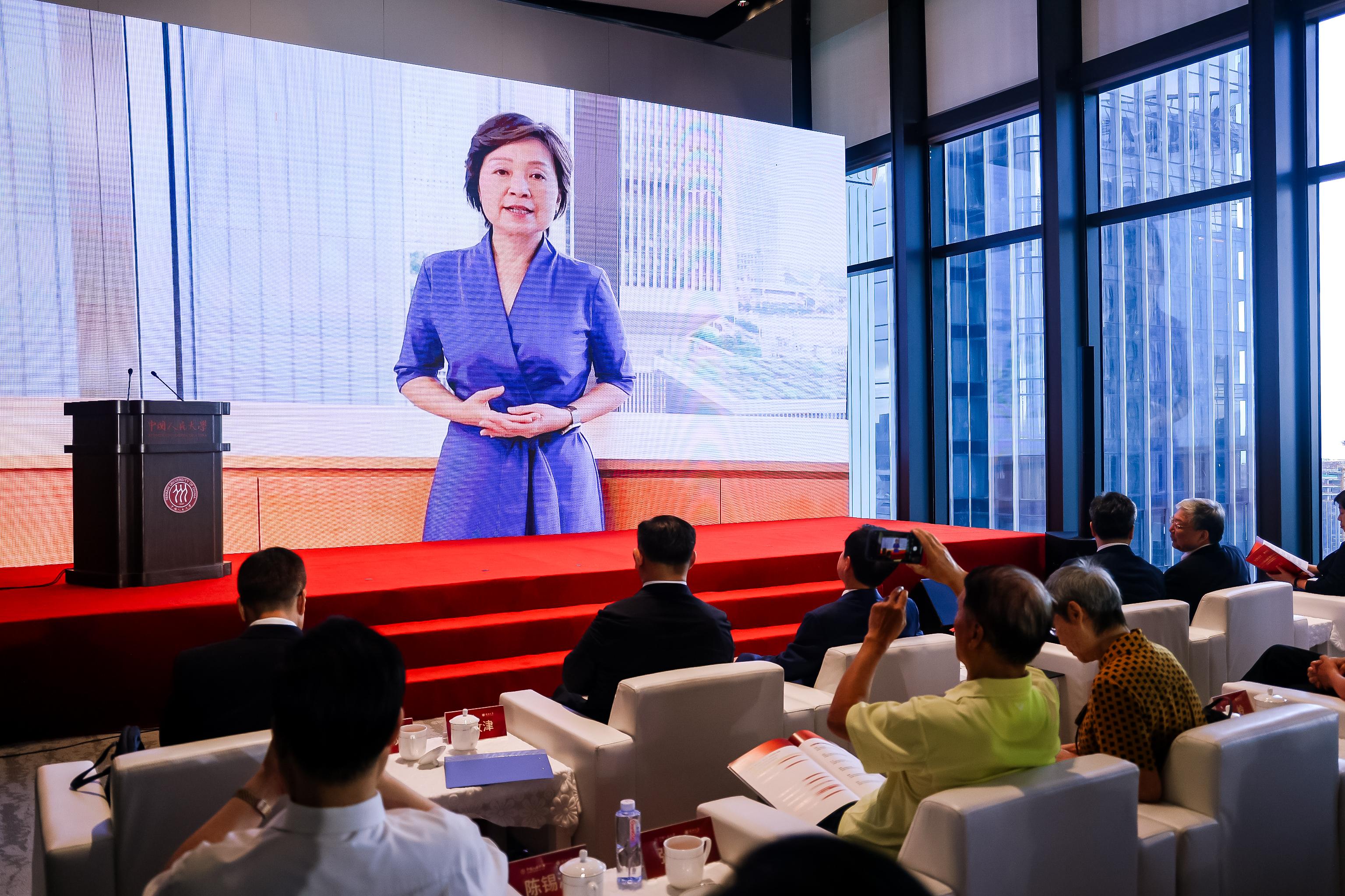 香港特别行政区教育局局长蔡若莲以视频形式致辞。她代表香港教育局对研讨会的召开和深圳发展与战略研究院的成立表示祝贺。她表示,由中国人民大学与深圳大学合作共建的深圳发展与战略研究院,通过开展理论研究、社会服务、人才培养、国际交流等工作服务深圳高质量发展大局,相信研究院的成立将为促进学术界、企业界和政府部门之间的交流与合作,共同推动粤港澳大湾区教育创新与发展,提供坚实的人才和科技创新支持。香港具有背靠祖国、连通世界的独特优势,拥有多所世界百强大学;香港与深圳关系密切,两地高校一直通过不同方式进行交流合作,涵盖科研创新、人才培养等多个领域,未来希望进一步发挥好香港作为国际化桥梁与窗口的作用,深度对接粤港澳大湾区规划融入国家发展大局,持续深化与深圳在高等教育领域的合作,凝聚优质教育资源,完善合作机制,共同推进大湾区高质量发展,为强国建设、民族复兴伟业作出新的贡献。