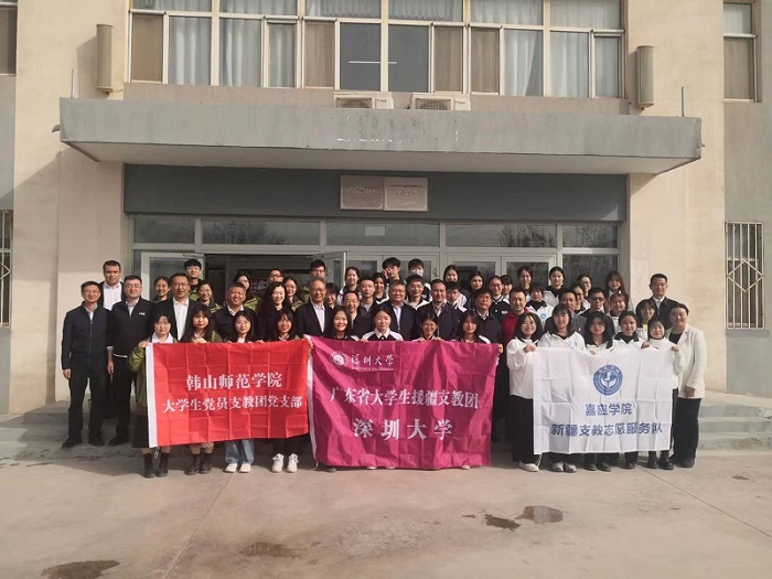 自全国对口支援新疆工作开展以来,深圳大学充分发挥高校资源优势,不断加大教育援疆力度:一是在人才培养、师资队伍建设、学科发展、学术交流、科研合作、资源信息共享等方面给予喀什大学业务指导与交流合作,先后派出多位教师到当地指导帮助化学、物理、经济、计算机等学科建设,为喀什大学科研发展和人才培养做出贡献;二是结合广东省教育援疆五年规划,深圳大学作为牵头单位,联合韩山师范学院、嘉应学院、深圳职业技术学院等三校组成组团单位,与喀什市、塔什库尔干塔吉克自治县开展共建大学生思想政治教育暨实习支教基地项目,并于2023年春季学期组团选派40名优秀大学生(我校选派管理学院王玉婷老师作为随队指导教师以及8名优秀支教大学生)赴新疆喀什和塔县实习支教,支援当地中小学、幼儿园的教育教学工作。
