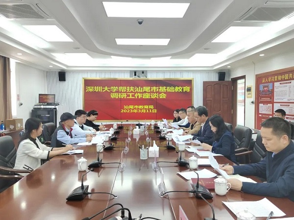 3月11日上午,汕尾市教育局举行深圳大学帮扶汕尾市基础教育工作座谈会。会上,深圳大学调研组介绍了去年帮扶工作情况,并就新一年度帮扶工作计划提出了具体意见。汕尾市政协副主席、市教育局党组书记、局长许伟明介绍了汕尾教育的基本情况,感谢深圳大学过去一年对汕尾教育工作的帮扶和指导,希望深圳大学“尽深大所能,急汕尾所需”,加强校地互访,完善常态化对接帮扶机制,制订完善中长期帮扶计划,促进项目高效落地。