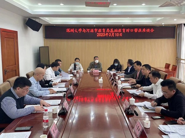 3月10日上午,深圳大学调研组到河源市教育局开展调研并召开座谈会。会上,双方围绕落实基础教育对口帮扶任务、开展教师培养项目等方面进行了深入交流。调研组介绍了去年深圳大学落实帮扶工作的情况,并结合与会教师代表提出的建议,就新一年度帮扶工作计划提出了初步规划和意见。我校驻河源市浰源镇帮扶工作队提出,充分利用深大对口帮扶和平县浰源镇的教育帮扶援建项目——智慧教室,辐射周边片区,确定浰源中心小学为深圳大学在河源“送教上门”教学培训基地学校。河源市教育局副局长黄汝荐对深圳大学的帮扶表示衷心感谢,他简要介绍了河源教育基本情况,希望深圳大学聚焦河源教育短板,对帮扶项目作出整体规划,双方进一步建立完善沟通交流机制,进一步细化帮扶任务清单,进一步丰富教师培训的方式和载体,切实提高帮扶工作实效。
