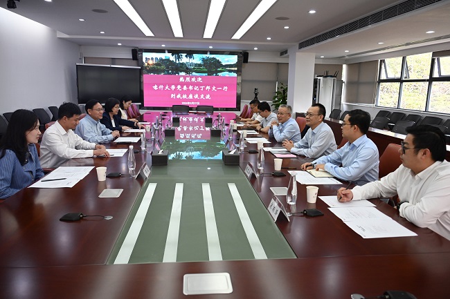 3月27日,喀什大学党委书记丁邦文一行来访。副校长张学记会见来宾。双方在粤海校区汇元楼举行座谈,深入交流校际合作事宜,并签署合作交流协议,推进两校合作再上新台阶。