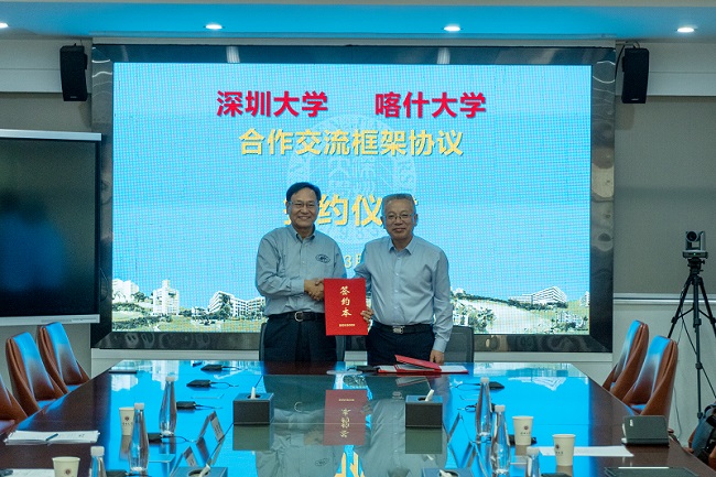 随后,张学记、丁邦文分别代表深圳大学和喀什大学,在与会人员的见证下签署合作交流协议。根据协议,双方将在学科专业建设、师资队伍建设、科研能力建设、研究生联合培养、中巴经济走廊研究中心(喀什大学)交流合作等方面开展合作。