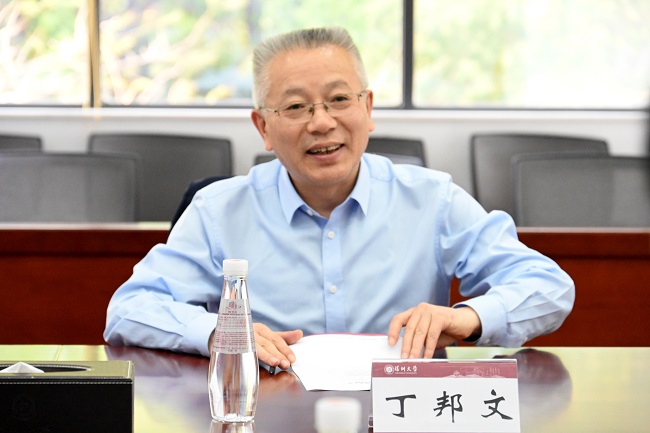 丁邦文感谢深圳大学长期以来对喀什大学建设发展给予的大力支持、帮助,简要介绍了喀什大学发展现状,希望深圳大学一如既往支持、关心喀什大学发展,今后在学科建设、人才培养、智库研究等方面开展多层次合作,共同落实第九次全国对口支援新疆工作会议精神。