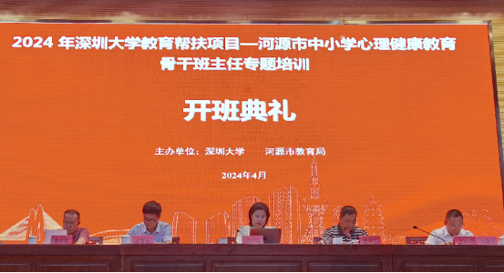 经过前期精心筹划,2024年4月19日下午,由深圳大学与河源市教育局联合主办的“深圳大学——河源市中小学心理健康教育骨干班主任专题培训”在河源市委党校开班,深圳大学教育学部教师发展学院常务副院长黄娟、市教育局主任督学曾民卫出席开班典礼并讲话。全市共有450名骨干班主任参加了为期2天的培训。