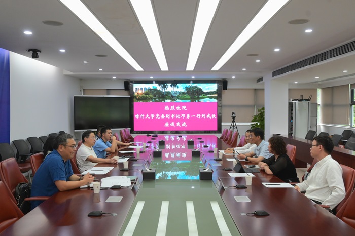 8月12日,喀什大学党委副书记邓勇一行来访深圳大学。副校长徐晨会见来宾。双方在粤海校区汇元楼举行座谈,深入交流校际合作事宜。