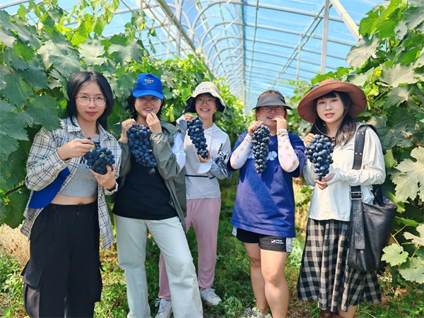 7月19日益才班一行参观阿克苏振兴园区葡萄基地,益才班学生们进入果园采摘葡萄,品尝到了现摘葡萄的清甜可口。在基地工作人员介绍后,大家了解到一个葡萄基地能够吸纳数百名当地农民就业,显著改善了社区的经济状况。基地通过将种植业与养殖业结合,成功实现了生态农业循环,有效提高了资源利用效率,减少了环境负担。大家深刻体会到构建生态农业闭环对促进当地经济发展和农民增收的积极推动作用,进一步激发了大家对推动乡村振兴的热情和思考。