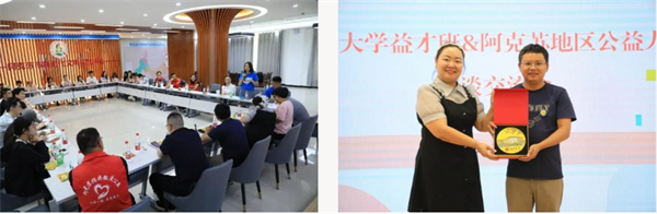 7月17日益才班一行与阿克苏青年志愿者协会、指尖微爱公益协会、蚂蚁义工团及点滴公益协会等公益伙伴交流。学生们了解了这些组织在社区服务、教育助学、环境保护等方面的运作模式和挑战,同时也分享了自己在一些公益组织运营实践中的心得和经验,并向他们赠送了深圳大学标志性建筑纪念品,以此纪念本次友好的公益交流。