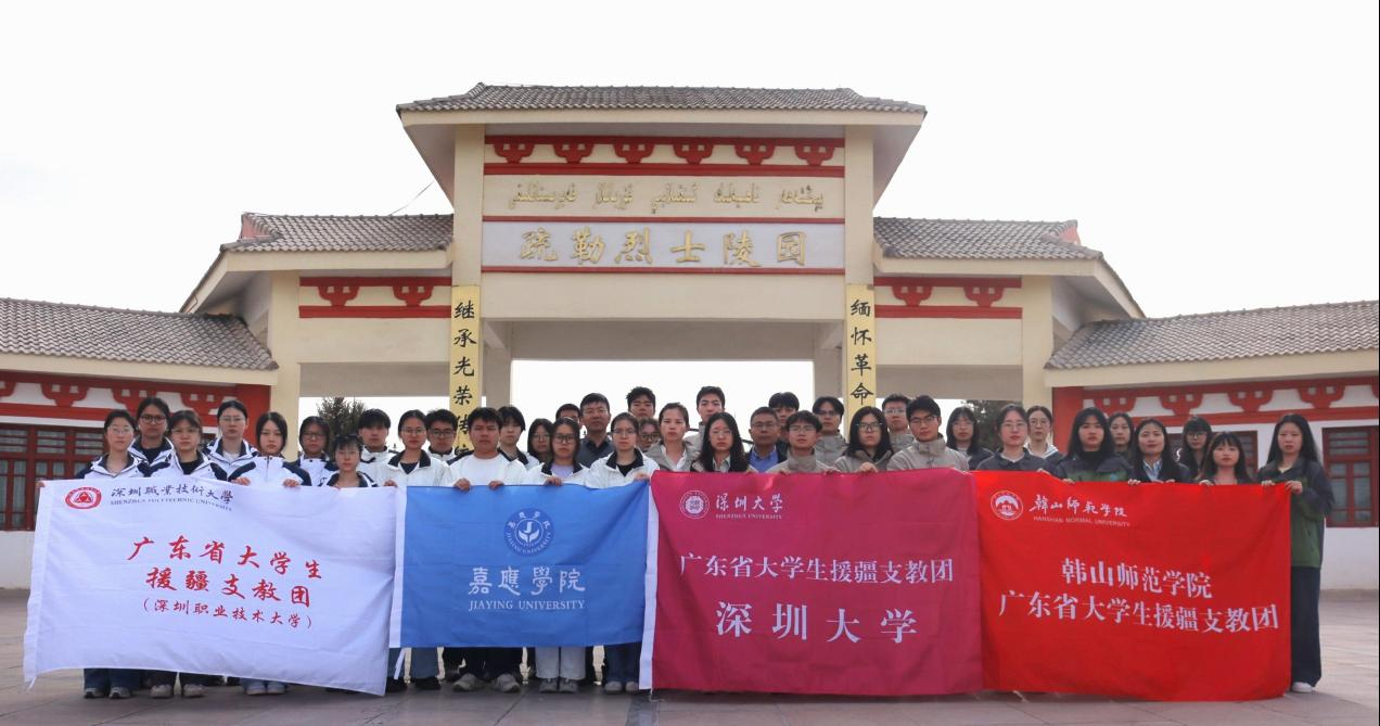 活动首日,深圳支教团学生与深圳援疆教师共同前往疏勒烈士陵园祭扫先烈。全体并肩肃立默哀、敬献花篮,在讲解员动情讲述边疆保卫战英烈事迹时,两地教育工作者在烈士纪念碑前交流育人初心。支教团大学生肖童感慨:"看到援疆教师们扎根边疆教育的身影,更深刻理解了红色基因的当代传承。