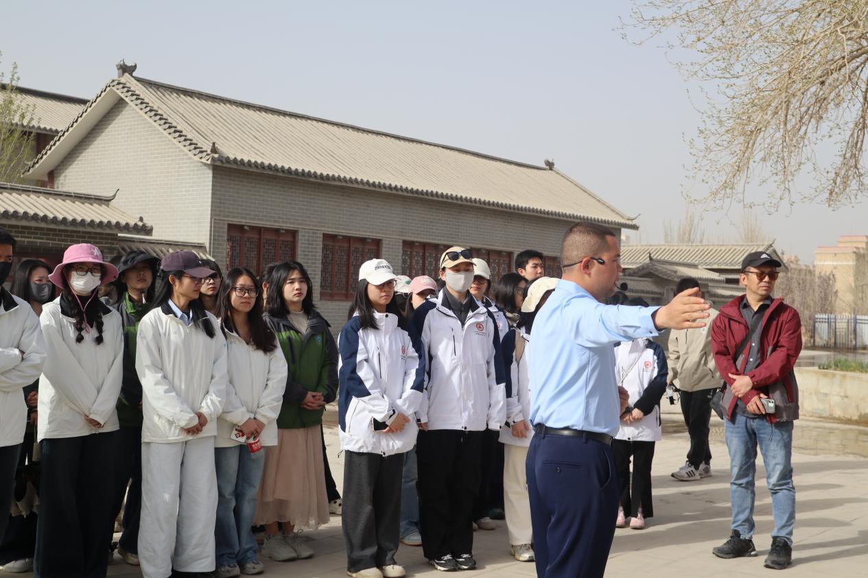 随后,团队抵达英吉莎杏花村。漫山遍野盛开的杏花与独具特色的当地建筑相互映衬、构成一幅幅生动鲜艳的画卷,队员们漫步万亩花海、用镜头记录下新疆春天的独特魅力。这里风景如画,反映出当地生态环境的改善、特色产业的发展以及文旅融合对乡村振兴的积极推动。下午,团队走进英吉沙小刀博物馆,深入了解工匠精神,从民族文化瑰宝中感悟中华民族的智慧与坚韧。之后支教团赴莎车县叶尔羌汗王宫遗址开展历史研学,在千年古迹中探寻中华文化多元一体的深厚底蕴。
