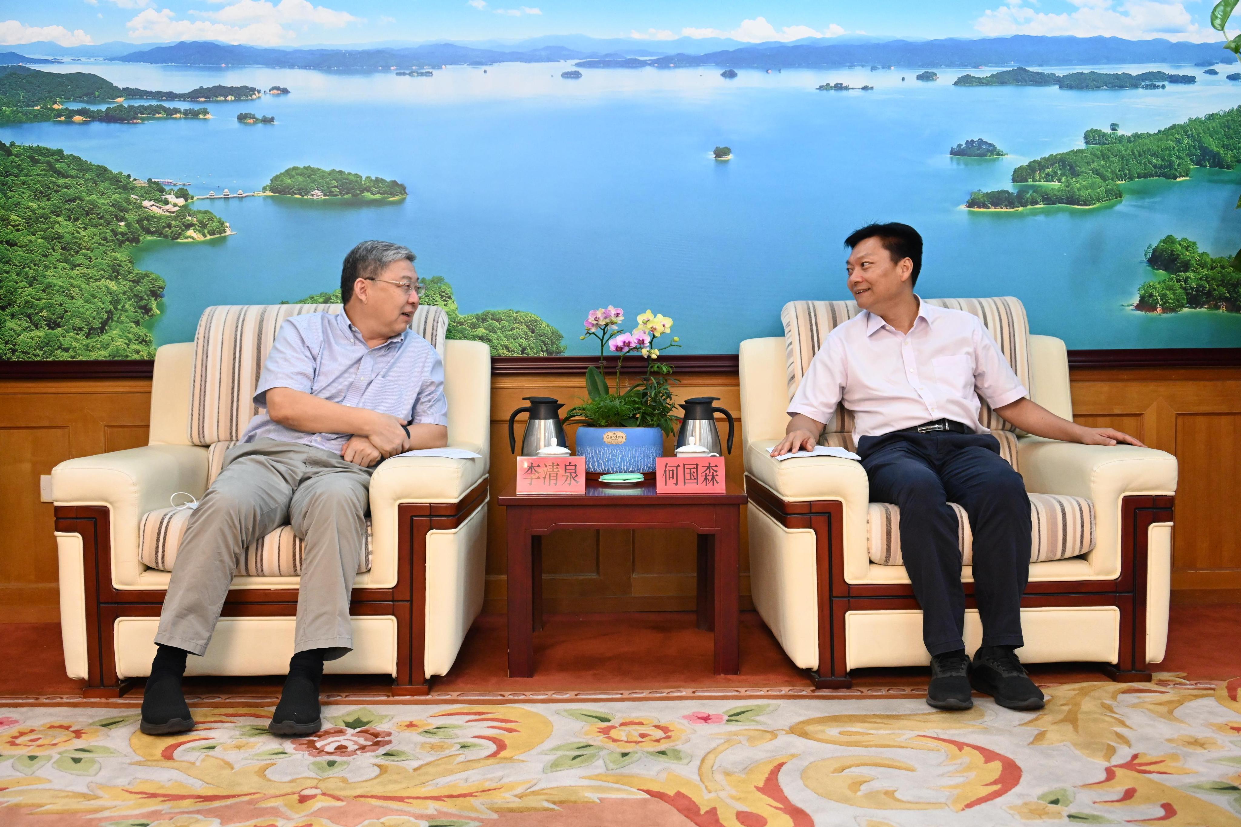 在河源市迎宾馆,李清泉与何国森、谢春艳等河源市领导就深圳大学对口帮扶河源市产业共建、基础教育帮扶等工作展开座谈。河源市教育局、科技局负责人参加座谈。