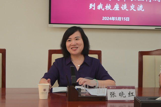 张晓红副校长热情欢迎温树斌一行的到来。她从发展历程、教育教学、人才培养、师资队伍、学科发展、科学研究等方面介绍了深圳大学建校41年来取得的成就,并表示,深圳大学将以高度的政治站位,按照“县域所需,高校所能”,继续发挥优势特色,进一步推动“双百行动”、全口径全方位融入式基础教育帮扶、体育浸润行动计划等帮扶任务走深走实,努力打造结对帮扶样板标杆。