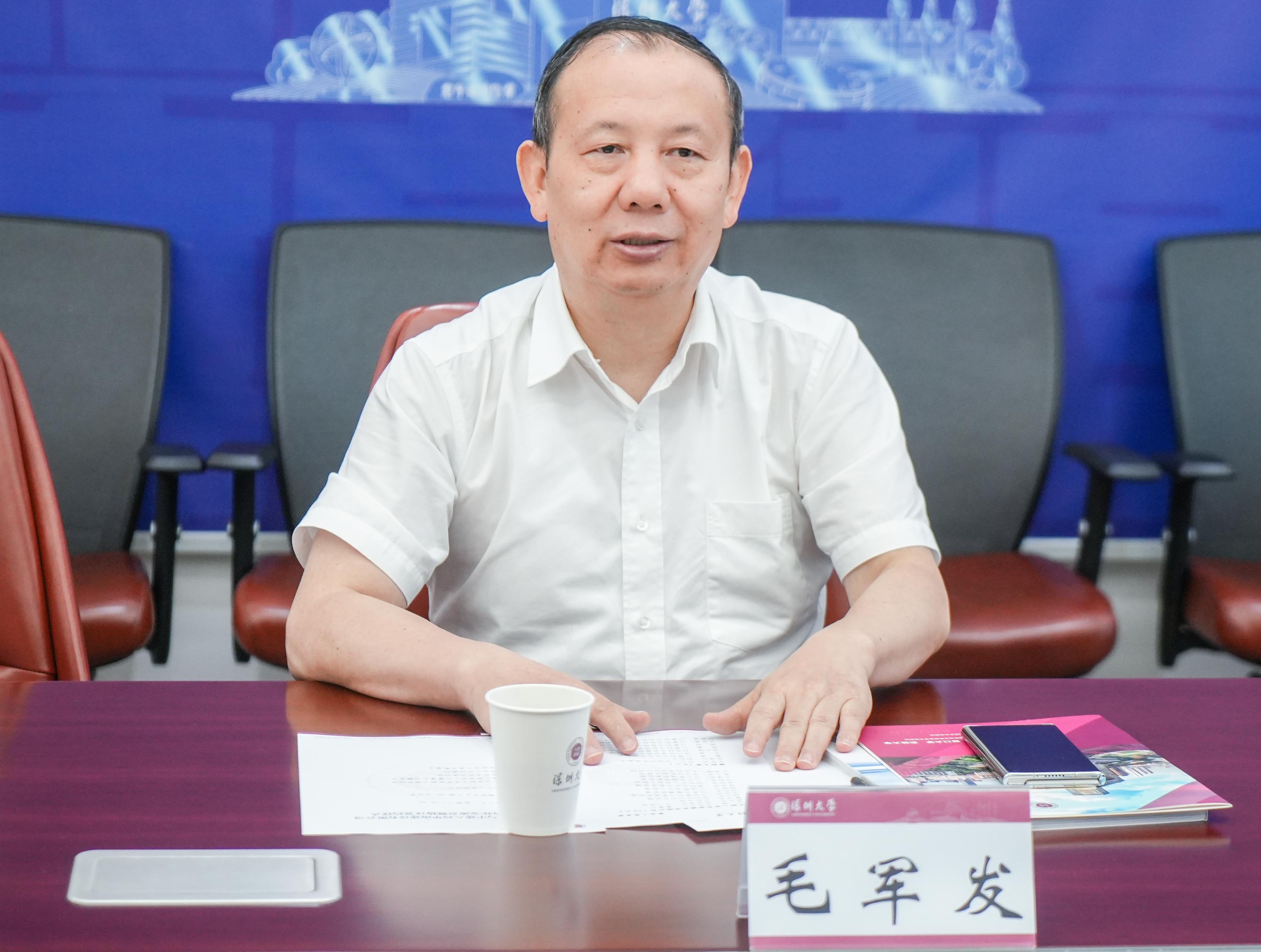 毛军发致欢迎辞,从历史沿革、学科门类、师资队伍建设、学科建设、科研实力等方面介绍深圳大学的基本情况。他表示,深圳大学建校41年来发展迅速,作为特区大学、窗口大学、实验大学,始终重视提升科研创新能力和高水平、多元化的师资队伍建设,在学科建设、人才培养、科学研究等方面取得了显著成果。毛军发表示,深圳大学感谢中建八局长期以来对学校就业工作的支持,今后将继续培养和输送更多优秀毕业生;希望双方通过合作共同推动产学研协同创新和加快成果转化,打造校企合作典范,促进建筑行业的智能化发展。