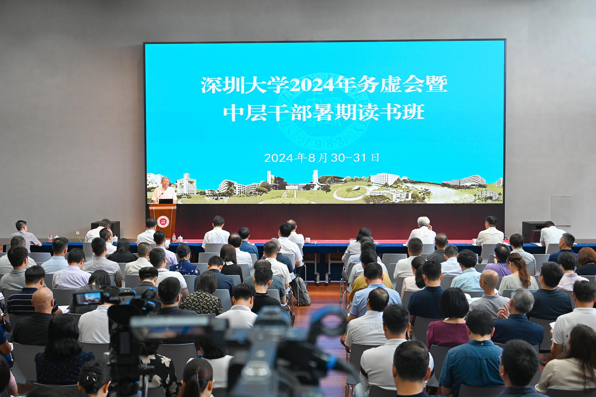 为深入学习贯彻习近平新时代中国特色社会主义思想和党的二十届三中全会精神,努力争创世界一流综合性大学,打造新时代中国特色社会主义标杆大学,8月30日至8月31日,深圳大学在校友广场召开2024年务虚会暨中层干部暑期读书班,认真对照深圳大学“十四五”规划完成情况,锚定世界一流综合性大学建设目标进行深入学习探讨。