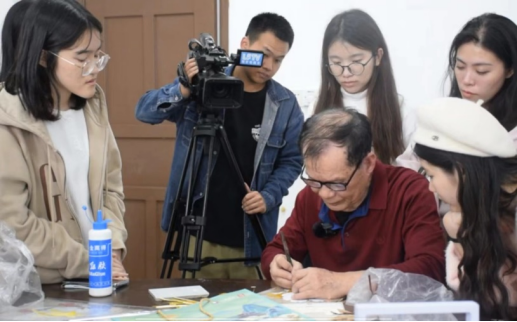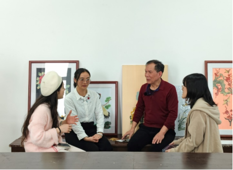 会后,实践团队来到碣石中学,采访碣石麦秆画省级传承人林锡安与其徒弟碣石中学李伟珊老师。在采访中,林锡安讲述了他的手艺传承之路和麦秆画目前的产业现状,林锡安和李伟珊老师正努力培养更多年轻传承人,希望这项非遗技艺能够继续流传下去。现场氛围融洽,林锡安还向团队成员展示了碣石麦杆画的制作过程,让师生们感受到了这项技艺的魅力。
