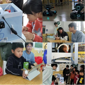 第二部分是技术展览。团队成员指导学生们操作机器人进行“对抗训练”,对3D打印技术进行实例演示讲解,让学生“沉浸式”体验先进科技。