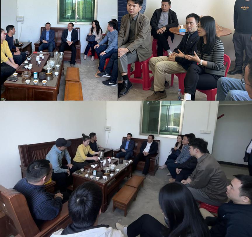 上午11:00,调研队伍经过三个半小时车程刚到达陆丰市委就马不停蹄立即投入调研。在陆丰市农业农村局副局长冯志填及深大派驻陆丰市帮扶干部邵存才主任等干部的陪同下,调查组来到城东街道高美村进行了近两小时的实地走访。高美村的主要产业是地区知名茶叶高美茶。调研组实地考察了当地的茶园、茶厂,并对高美茶缺少产、供、销一体化发展、销路受限的问题展开了热烈的现场交流。