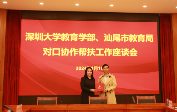 为深化深圳大学对口帮扶汕尾教育机制,有力有效持续推进“双百行动”取得实效。2024年1月19日,深圳大学教育学部党委书记李臣率队赴汕尾市教育局进行了调研。学部执行主任李均、办公室主任王璧、各支部书记等一行14人参与了本次调研。