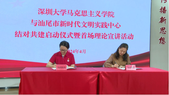 启动仪式上,深圳大学马克思主义学院与汕尾市新时代文明实践中心签订结对共建合作协议,充分发挥重点马克思主义学院在理论研究和宣传阐释方面的示范引领作用,共同推动习近平新时代中国特色社会主义思想深入基层、深入群众、深入人心。