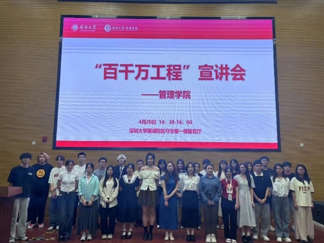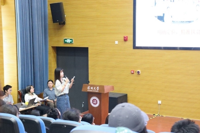 首先,蔡林轩老师以带队老师的身份,围绕四个维度——“什么是百千万工程”、“百千万工程需要去哪里”、“百千万工程需要做什么”以及“如何参与百千万工程” 详尽地阐述了管理学院即将启动的暑期“百千万工程”项目内容,并特别强调了“县域所需,高校所能”的项目内涵及目标。蔡老师的讲解不仅为在场的同学们提供了明确的方向指引,同时也点燃了大家对参与项目的热切期待与满腔热情。