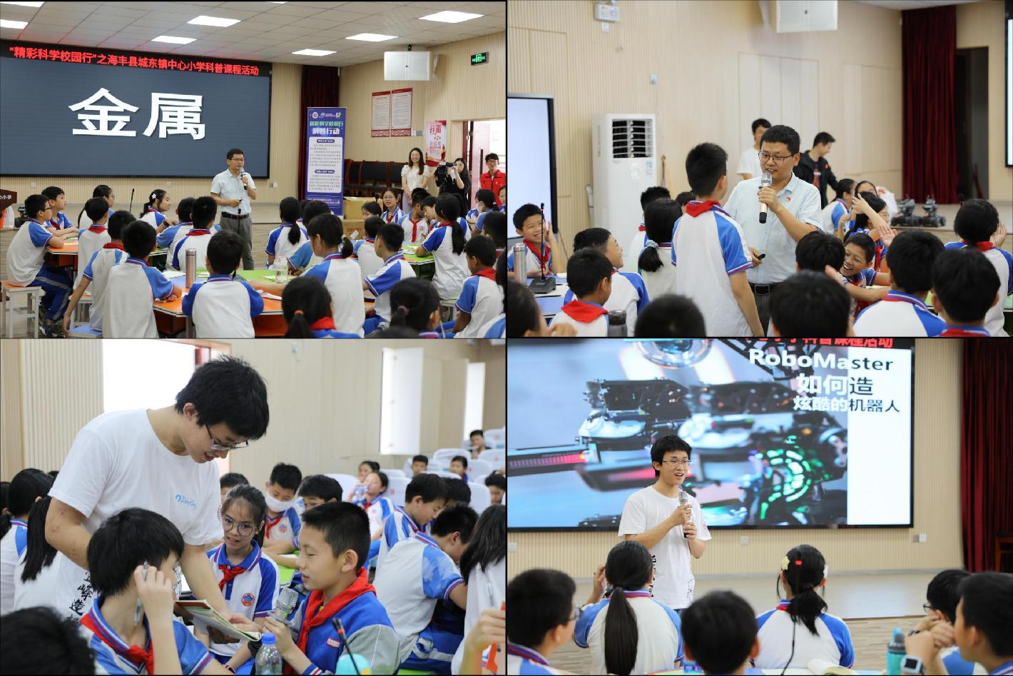 习近平总书记强调,要把科学普及放在与科技创新同等重要的位置。实践队伍在海丰县东城镇中心小学开展了“精彩科学校园行”科普活动,通过“玻璃之王”“机器人技术”两场生动有趣的科普课,传播科学思想,弘扬科学精神,为赋能乡镇教育振兴贡献力量。机电与控制工程学院党委委员马将教授是队员之一,曾获深圳市“最美科技工作者”“优秀教师”等荣誉称号。他领衔开讲,用通俗易懂的语言为当地师生介绍新型金属材料先进制造成型与应用研究科技前沿知识,课堂氛围轻松活跃,当地师生听的津津有味。“火树银花”“隔空传电”“魔法褪色”等实验互动引发热烈反响,课堂上掌声不断,孩子们被科学的奥秘与科学家的智慧深深吸引和感染。随后,RobotPilots机器人实验室成员陈星宇同学讲解机器人技术,通过视频教程及现场实操等方式,让孩子们直观地了解到机甲大师比赛、机器人实践应用。争先恐后举起的小手,求知若渴的目光,奇趣横生的提问……孩子们心里深深埋下科学兴趣的种子,看着孩子们眼中闪耀的熠熠星光,实践队师生更加坚定投身科技强国建设事业的决心,立志在科学探索之路奋楫笃行,以科技创新打造新质生产力,勇做科技强国的奉献者和践行者。