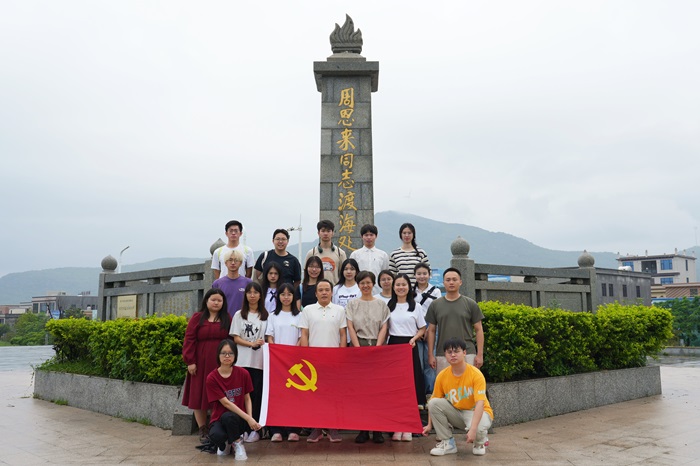 5月25日,教师与“四学”班全体学员代表来到金厢镇,依次参观“周恩来同志渡海处公园”和“周恩来活动居址”。在讲解员的带领下,观摩纪念先辈们一段段峥嵘岁月的浮雕,了解重大意义的历史事件,追忆往昔村民们用生命去保卫革命领导人的英雄事迹,进一步加强“四学”班学员们的革命信念和精神。