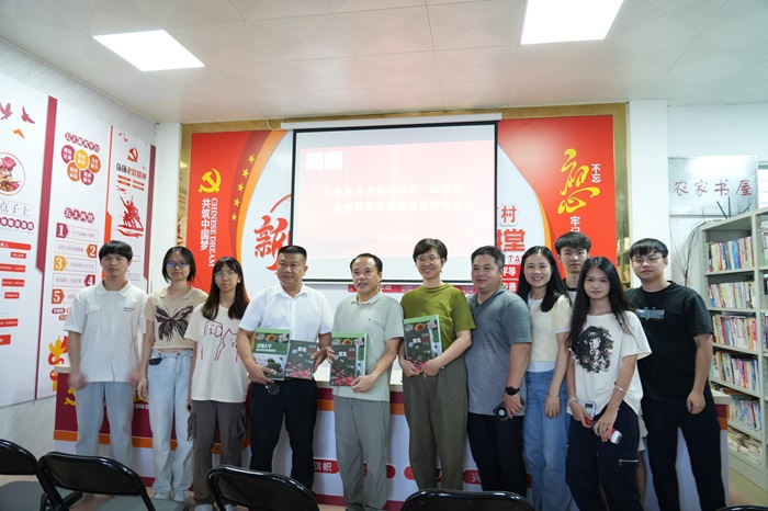 植树活动结束后,学院一行来到了点石村新时代文明实践站,与点石村驻村第一书记陈汉澄交流,并为点石村农家书屋捐赠学院编著的《深圳常见花鸟图鉴》和《深圳大学校园常见植物图鉴》书籍。