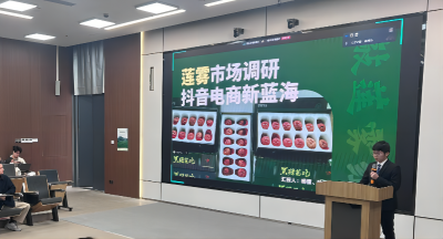 在答辩环节中,各项目组充分展示了从市场调研到产品开发、营销策略及预期效果的完整方案,展现了他们对项目的深入理解与实践能力。首先,亿啡组率先汇报,详细介绍了他们围绕湖畔咖啡展开的市场调研、抖音视频剪辑以及抖店运营建设工作,旨在提升品牌的市场知名度与线上销售能力。随后,好奇一杯组分享了他们通过市场调研及电商渠道的开拓,结合短视频营销为湖畔咖啡引流的创新尝试。接下来,三杯茶组展示了他们为莲山茶叶所进行的市场调研、内容创作与新媒体运营,并结合创业计划书为茶叶品牌注入可持续发展的理念。茶颜悦色组则以校园推广策略为切入点,分享了如何将莲山茶叶的品牌推广至更多潜在消费者的独特视角。随后,超级莲雾组通过市场调研与短视频营销的结合,创新性地设计了小程序开发方案,为圭润莲雾打造了数字化营销路径。最后,敲莲雾组围绕圭润莲雾,深入分析了市场调研结果,并提出了一套详细的抖店运营计划,为产品的线上销售赋能。各组的汇报内容涵盖了从调研到实践的全链条方案,不仅展现了扎实的专业功底,还凸显了各组在项目执行中的创造力与团队合作精神。