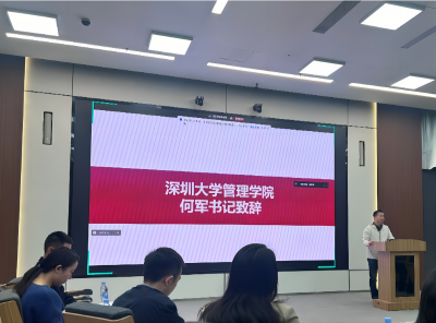 答辩正式开始前,深圳大学管理学院党委书记何军发表了热情洋溢的致辞。他对到场的嘉宾和师生表示热烈欢迎,并对大家的支持和参与表达了由衷的感谢。何军书记表示,此次活动是将课堂学习与社会实践相结合的重要尝试,为同学们提供了一个真实了解地方经济发展的窗口。他鼓励参赛团队以饱满的热情投入展示,积极展现创新能力与实践成果,为乡村振兴贡献智慧力量。他还强调,管理学院高度重视“双百行动”,通过调研与实践,形成了一系列扎实的帮扶方案,推动校地合作走深走实。