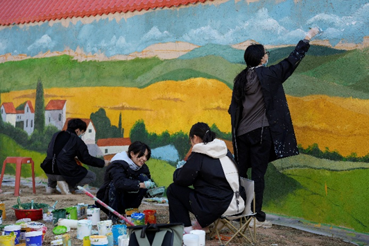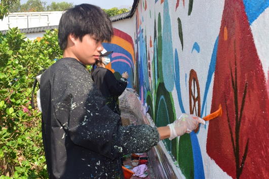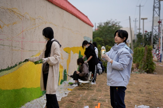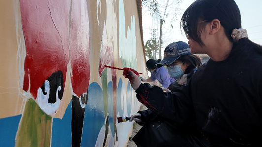 以主题墙绘助力乡村风貌提升,是“百千万工程”中乡村文化创意和保育的重要形式,为当地文化宣传添砖加瓦。自2024年10月以来,艺术学部已经先后组织8支队伍前往汕尾,乡村墙绘面积已近2500平方米。